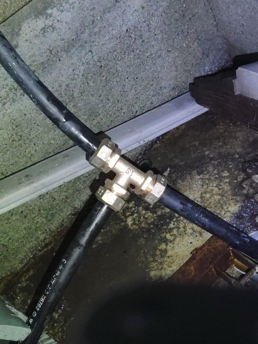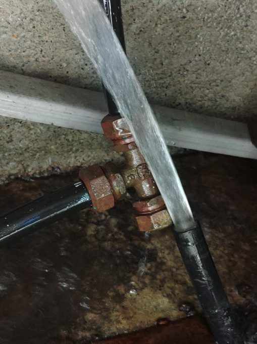 急いで元栓を閉め、給水管の一部補修工事を進めさせていただきました。